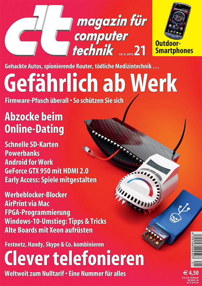 Egal ob Fernseher, Smartphone, Waschmaschine oder Auto – alles soll sich mit dem Internet der Dinge verbinden. Aber die Firmware vieler Geräte ist so alt und unsicher, dass sie sich dafür überhaupt nicht eignet. Gefährliches Beispiel: Beim aktuellen Jeep Cherokee gelang es Angreifern, von außen ein Auto in den Graben zu lenken. Sie hatten sich über Mobilfunk in das Infotainment-System des Wagens gehackt, das zum Beispiel für das Navi-Update zuständig ist. Aber an dem System hängen auch – völlig ungesichert – das Bremssystem und die Lenkung.