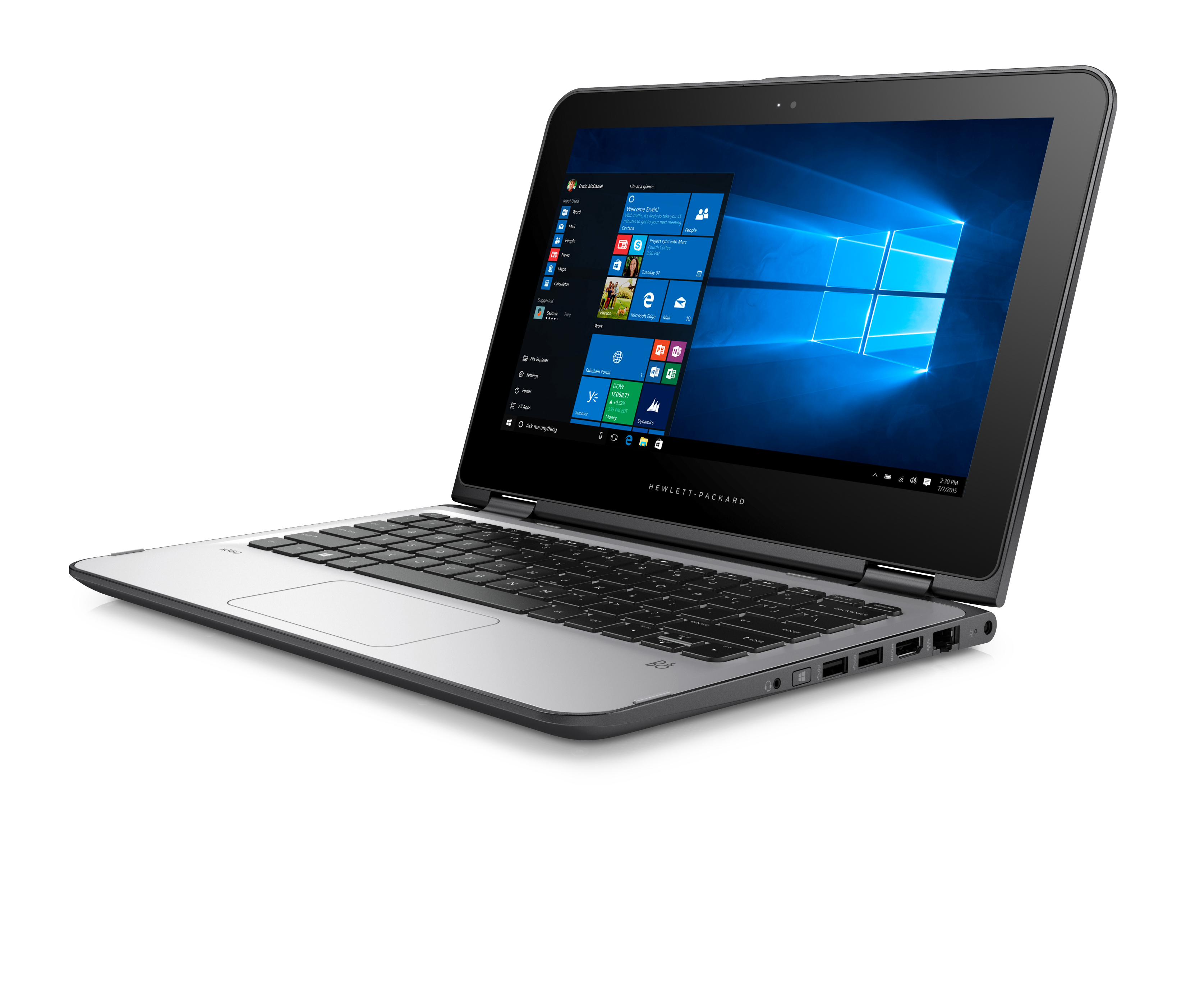 Die HP x360 310 G2 PC Education Edition mit Windows 10 (3) bietet optimale Voraussetzungen für integriertes Lernen und unterstützt durch ein rotierendes Scharnier vier unterschiedliche Darstellungsmodi: Stand-, Zelt-, Notebook- und Tablet-Modus. Der HP 310 x360 G2 ist mit einem Intel Celeron- oder Pentium-Prozessor (4) und bis zu 256 GB Solid-State-Speicher (5) ausgerüstet.