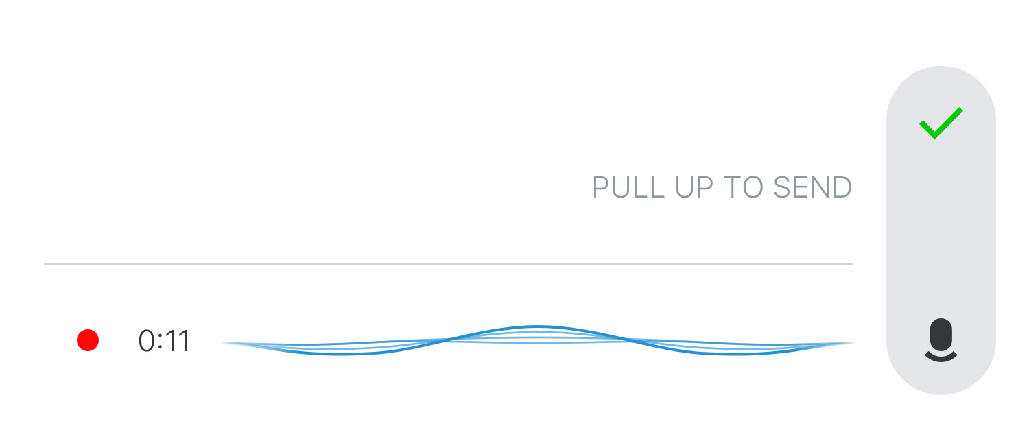 Für die neue Sprachnachrichten-Funktion wurde ein neues Zeichen in der Wire Menüleiste hinzugefügt. Wird das Zeichen gedrückt, startet die Aufnahme, wischt der Nutzer anschließend nach oben, wird die Nachricht sofort gesendet. Wer sich die Nachricht zuvor lieber noch einmal anhören möchte, nimmt hierfür nur den Finger vom Zeichen, um die Nachricht abzuspielen und anschließend entweder zu senden oder zu löschen.
