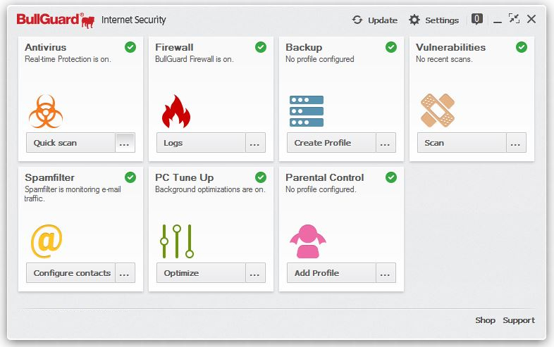- Schutz für unterschiedliche Betriebssysteme: Der Schutz von BullGuard ist ab sofort ausgeweitet auf Windows-, Mac- und Android-Geräte – mit nur einer Lizenz. Dies gilt auch für BullGuard Premium Protection, das zusätzlich zur ausgezeichneten BullGuard Internet Security auch Identitäts- und Social-Media-Schutz bietet.