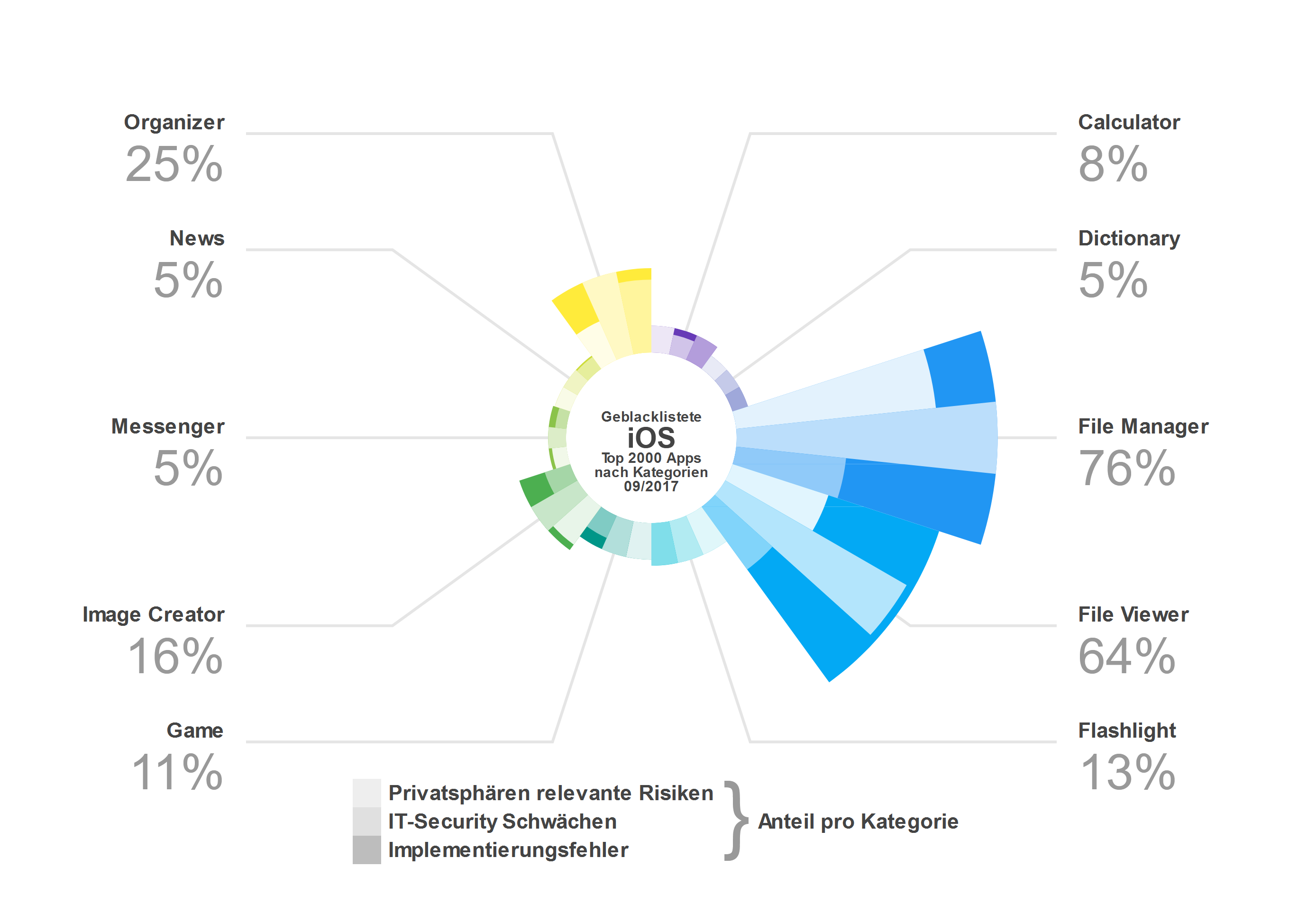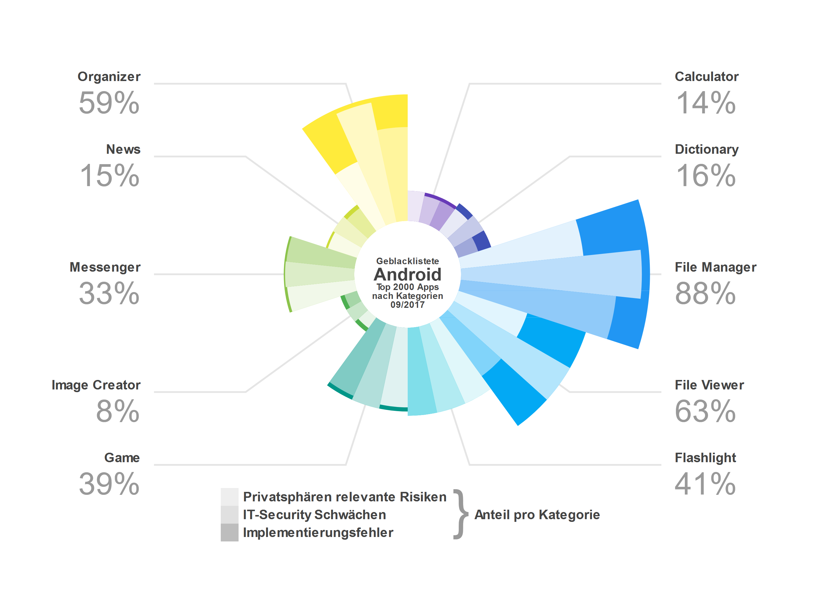 Die Fraunhofer-Sicherheitsforscher haben jeweils die 2000 Top-Apps für die mobilen Betriebssysteme Android und iOS automatisiert untersucht. „Smartphone-Nutzer, die Apps mit einer schlechten Sicherheitsqualität nutzen, können über Schwachstellen dieser Apps Opfer von Angriffen Dritter werden, ohne explizite App-Malware installiert zu haben.“, erklärt Jens Heider. Dabei können Angreifer gravierende Schäden anrichten, je nachdem, über welche Berechtigungen die anfällige App verfügt: „Hat eine App etwa Zugriff auf Mikrofon und Dateisystem, kann eine seriöse Nachrichten-App zu einer Wanze umfunktioniert werden“. Unter Android kann ein Angreifer in diesem Fall auch unbemerkt Inhalte wie interne Fotos oder vertrauliche PDF-Dokumente aus dem (externen) Dateisystem auslesen und in einen Cloud-Speicher des Angreifers kopieren. Laut Appicaptor Security Index sind zudem mehr als 70 Prozent der Apps zur Verwaltung von Dokumenten und Dateien nicht sicher genug, um in Unternehmen eingesetzt zu werden. So sind beispielsweise übermittelte oder gespeicherte Daten nicht hinreichend gegen den unbefugten Zugriff durch Dritte geschützt.