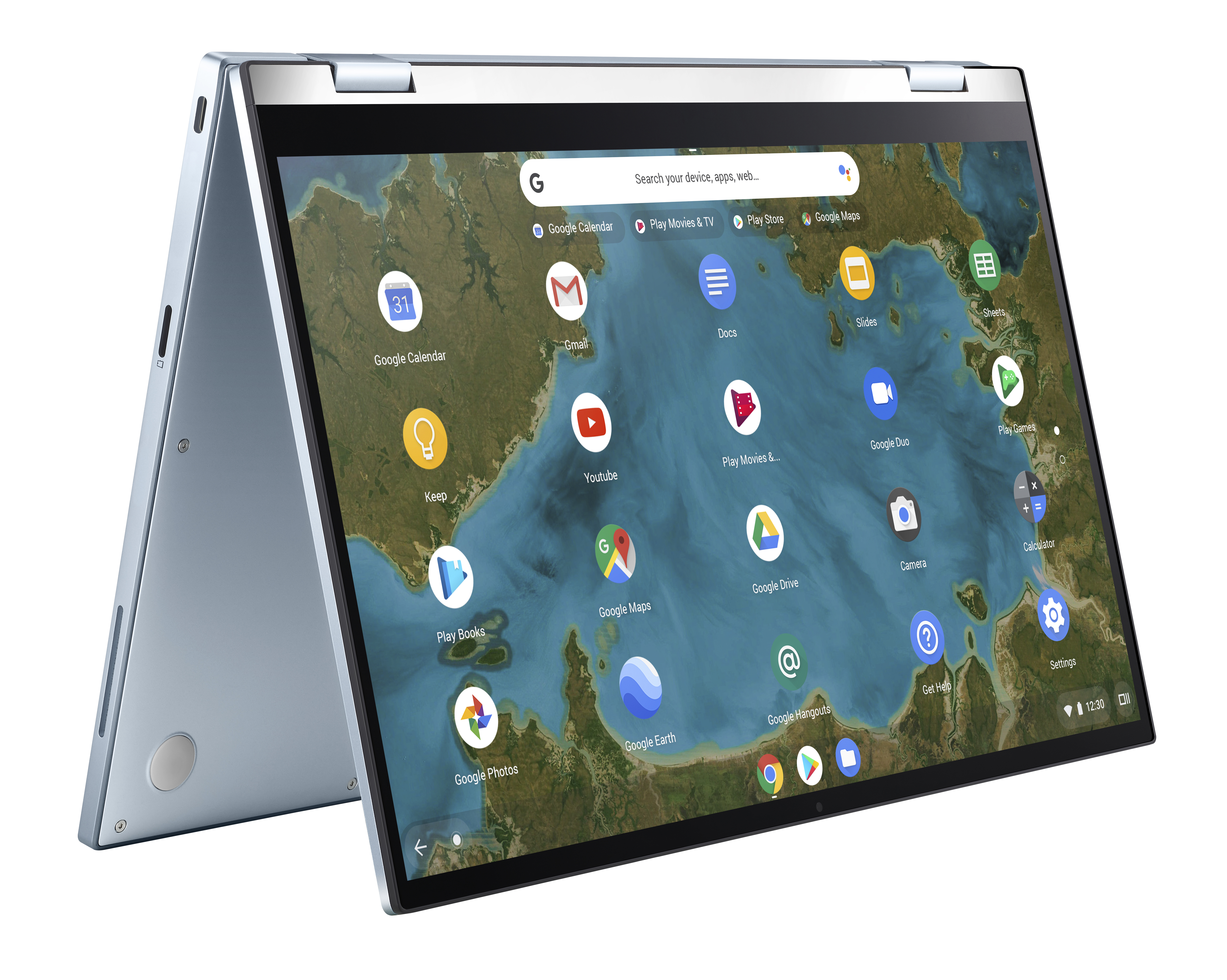 Das erste Project Athena Chromebook stellt mit dem neuesten Intel Core i5 Prozessor und bis zu 16 GB Arbeitsspeicher ausreichend Leistung zur Verfügung – egal ob für anspruchsvolle Produktivität oder spannende Unterhaltung. Dank des 13,7 mm schlanken und 1,1 kg leichten Chassis aus einer Magnesiumlegierung in Verbindung mit einer Akkulaufzeit von bis zu zwölf Stunden bietet es dem Nutzer höchste Mobilität. Zudem garantiert das Chromebook Flip C436 uneingeschränkte 360° Flexibilität, da es im Notebook-, Zelt, Stand- oder Tablet-Modus verwendet werden kann.